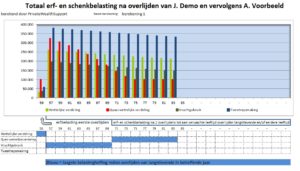 De Private Estate Planner bevat een aantal fraaie grafische dashboards. Dat helpt enorm om uw klant snel de effecten van bepaalde keuzes duidelijk te maken. Maar dat niet alleen, het inzicht aan de hand van grafieken is voor u als adviseur ook zéér prettig en educatief. Hieronder een voorbeeld van een grafiek uit de Private Estate Planner.